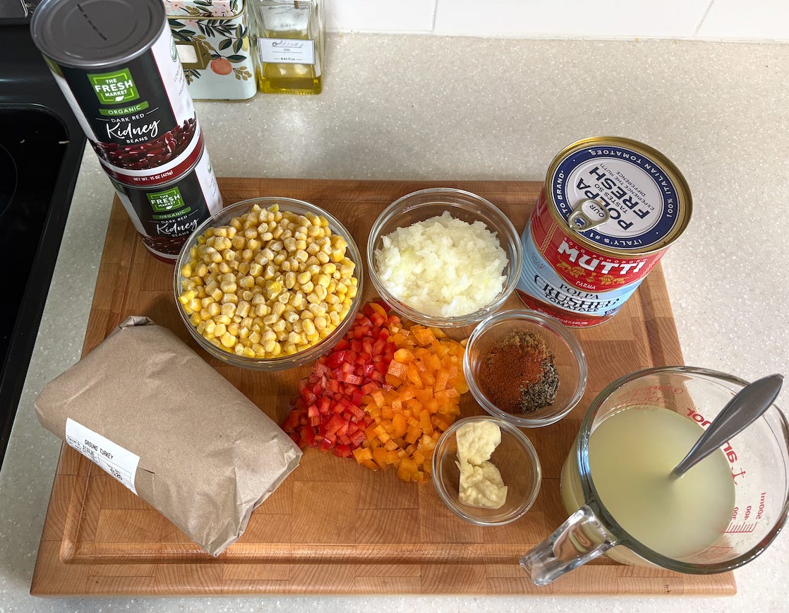 (cornbread ingredients not included in list, but should be items you already have)