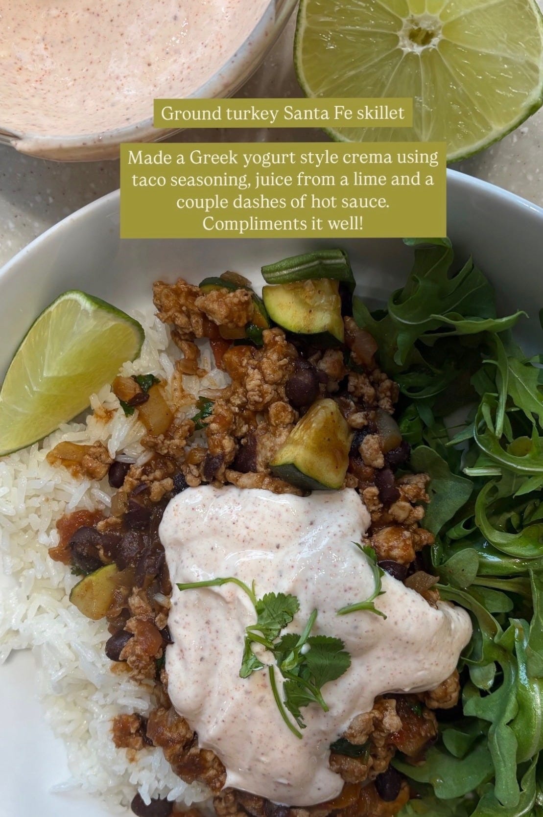 I like to drizzle a southwest style ranch over this. If you don’t have one, mix ranch with sriracha or your fave hot sauce. Could also do a greek yogurt based crema with it!