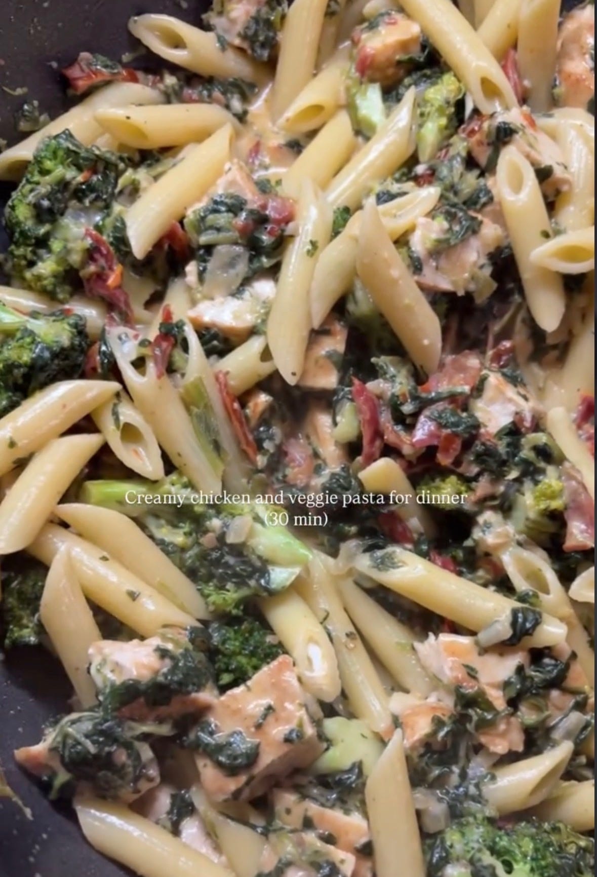 https://gatherednutrition.com/high-protein-creamy-chicken-veggie-pasta/